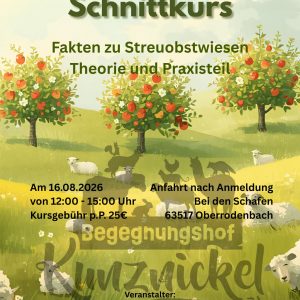 -Fakten zu Streuobstwiesen-Theorie und Praxisteil zum Obstbaumschnitt 12-15 Uhr, 25€ pP. Kinder können kostenlos mitkommen, wir bitten nur um Anmeldung. Bitte denkt an wetterfestes Schuhwerk und Kleidung. Anmeldung per Mail an info@begegnungshof-kunznickel.de